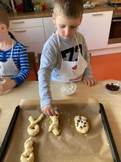 Am Dienstag, 17. März, besuchte uns Jonathan’s Mama im Kindergarten. Gemeinsam mit den Kindern hat sie nämlich Osterhasen und Kränze aus Germteig gebacken.