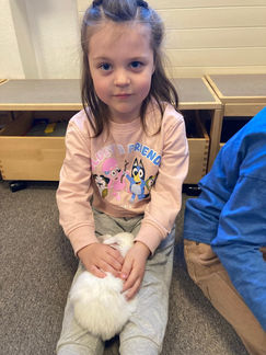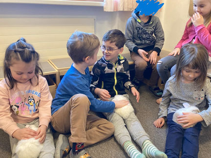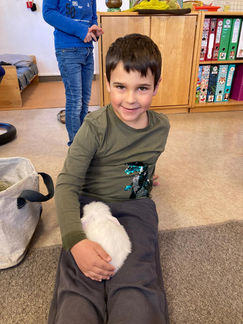 Bei Tierbesuch ist ein achtsamer, vorischtiger und ruhier Umgang natürlich super wichtig. Nur so können sich die Nagetiere auch wirklich wohl fühlen! Also wurden im Vorhinein gemeinsame Regeln besprochen und schon konnten die Kinder die Tiere auf den Schoß nehmen und vorisichtig streicheln. Und wie man sieht haben sich die Hasen bei uns echt wohl gefühlt. Wir bedanken uns für diesen kuscheligen Besuch!