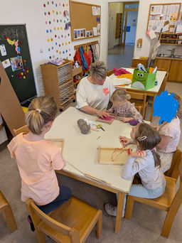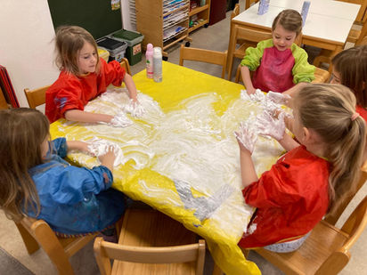 Um die Kinder in ihrer Entwicklung zu unterstützen, bauen wir gerne Elemente und Impulse zur sensorischen Förderung ein. Wir arbeiten mit Rasierschaum, malen mit den Fingerfarben (und den Händen), arbeiten mit Knete, Wasserperlen oder „Geisterschleim“. Diese Angebote werden von den Kindern sehr positiv angenommen und es ist zu beobachten, dass genau solche Impulse „erden“. Bei aktiven taktilen, sensorischen Tätigkeiten sammeln die Kinder wichtige Körpererfahrungen, werden dabei ruhiger und ausgeglichener. Gleichzeitig entstehen natürlich auch wichtige soziale Lernprozesse wie etwa das Teilen der Knetmasse, der dazugehörigen Spielmaterialien und vieles mehr.